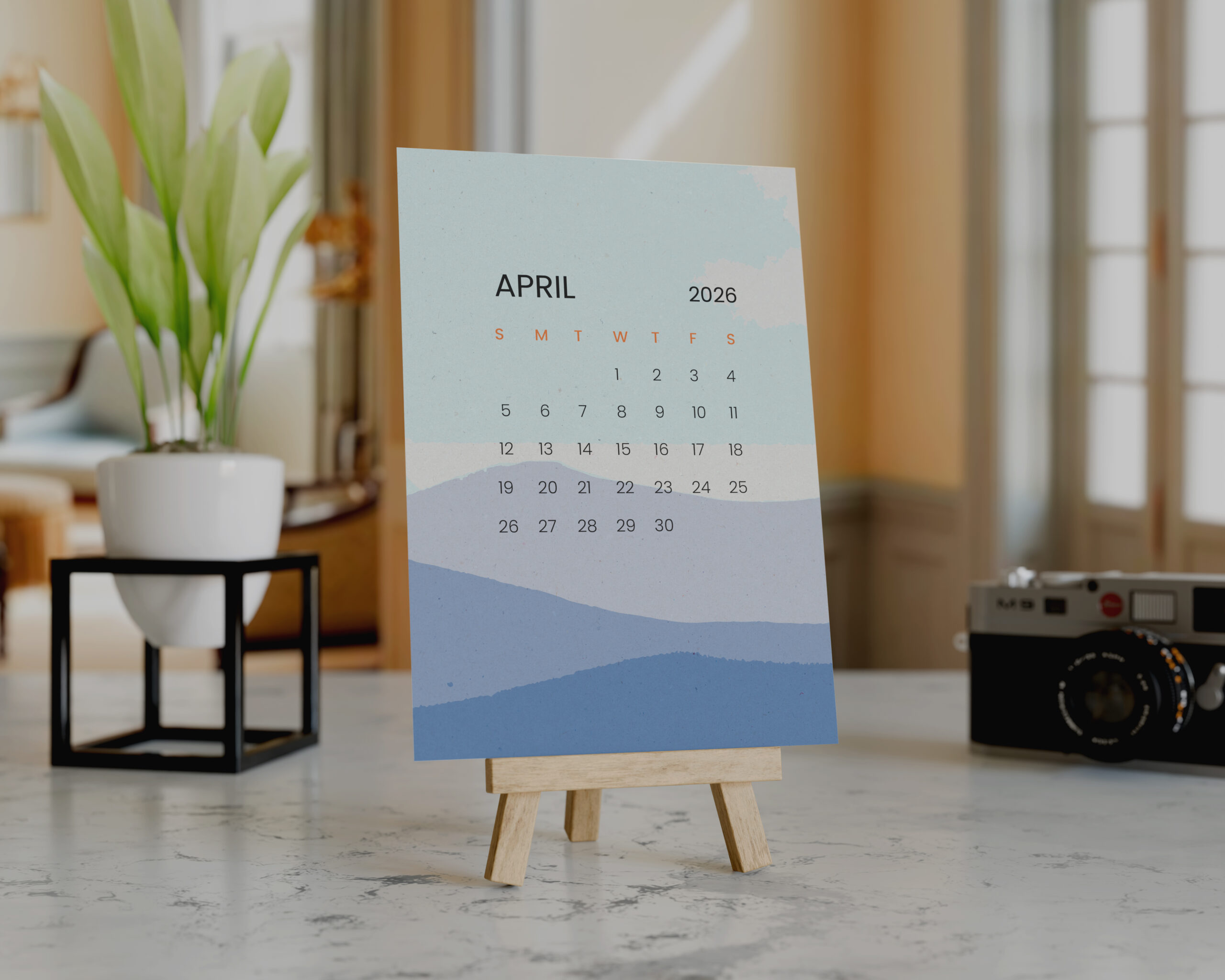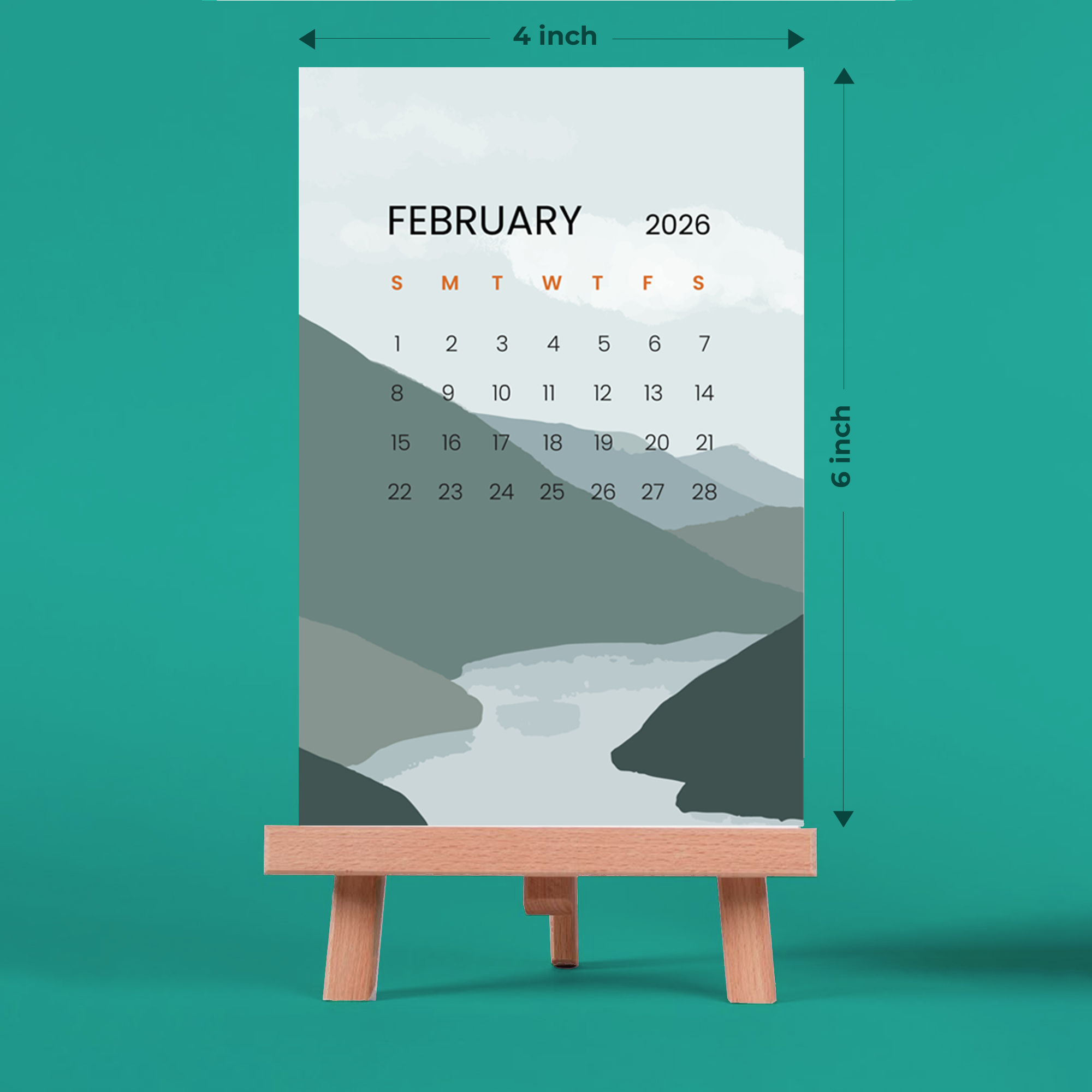 Transform your workspace with this elegantly designed 2026 desk calendar featuring stunning minimalist mountain scenery illustrations. Each month presents a beautifully crafted landscape in soothing colour palettes that bring tranquility to your desk. The calendar measures 10.16 x 15.24 cm (4 x 6 inches), making it perfectly sized for any workspace without taking up too much room. The vertical orientation and included wooden easel stand create an artistic display piece that doubles as a functional calendar. The clean, contemporary design showcases each month’s dates clearly while maintaining aesthetic appeal. From January through December, enjoy different scenic views that complement your space while keeping track of your schedule. The sturdy wooden easel provides stable support and adds a natural touch to the overall presentation. This calendar makes an excellent addition to home offices, work desks, or any space where style meets functionality. Perfect for those who appreciate minimalist design and nature-inspired artwork while staying organised throughout the year.